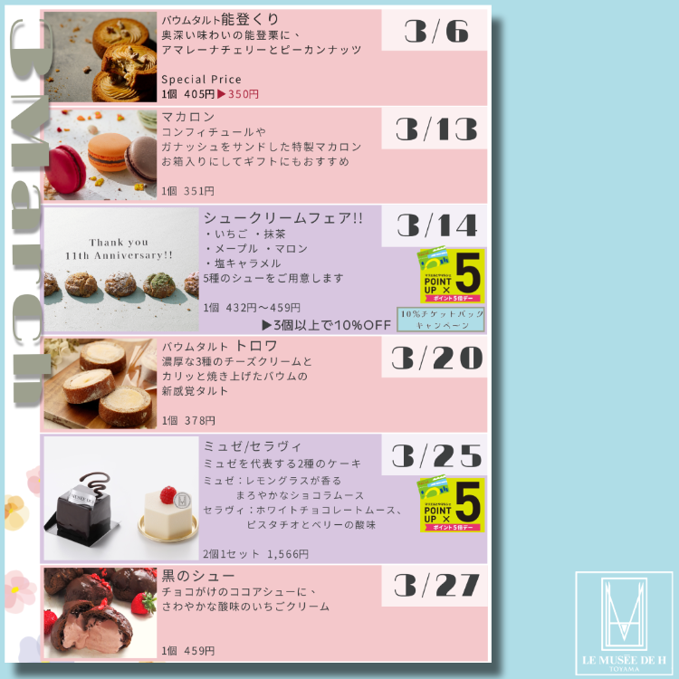 🌸3月の販売スケジュール🌸