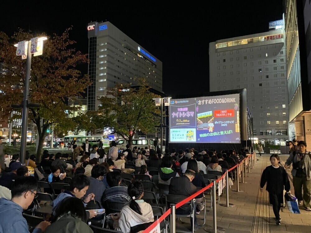 富山市内のダンススクールの子どもたちがナイトシネマの大きなスクリーンの前で堂々とパフォーマンスを披露します。