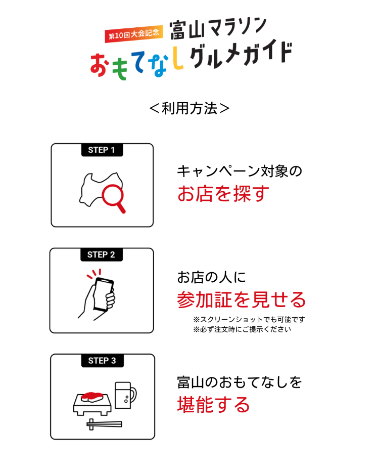 参加証を使い素敵なサービスをGETして、富山の食の魅力を楽しみましょう!