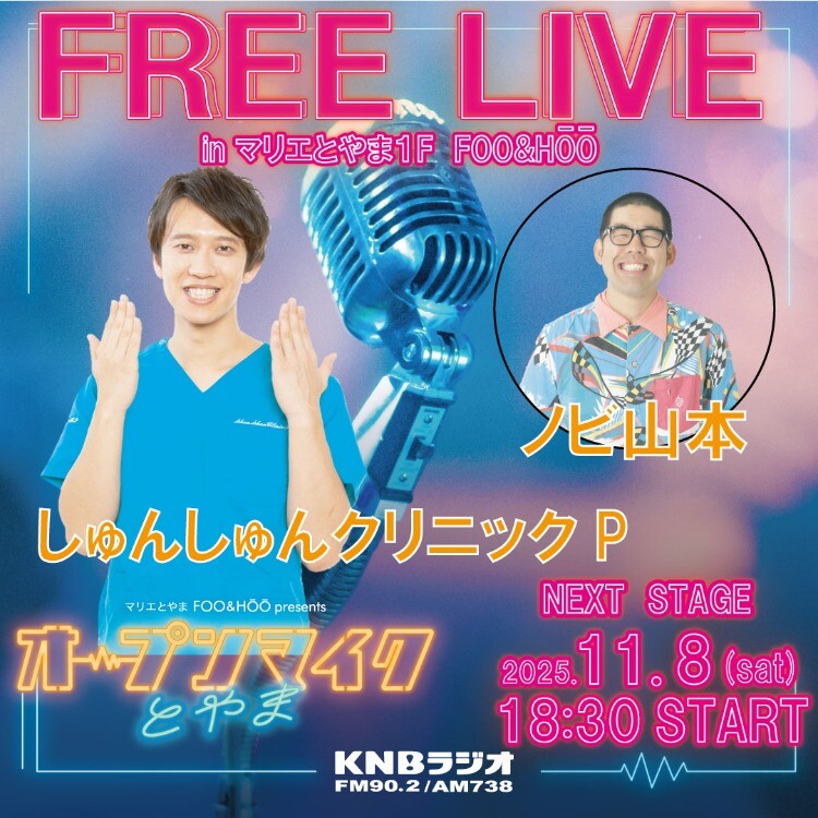 KNBラジオ オープンマイクとやま×マリエとやま 1F FOO&HŌŌ presents スペシャルライブ開催🌟