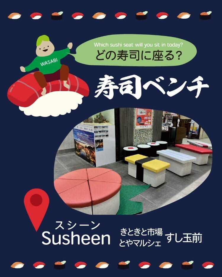 お寿司の上に座れる!?可愛い寿司ベンチ🍣