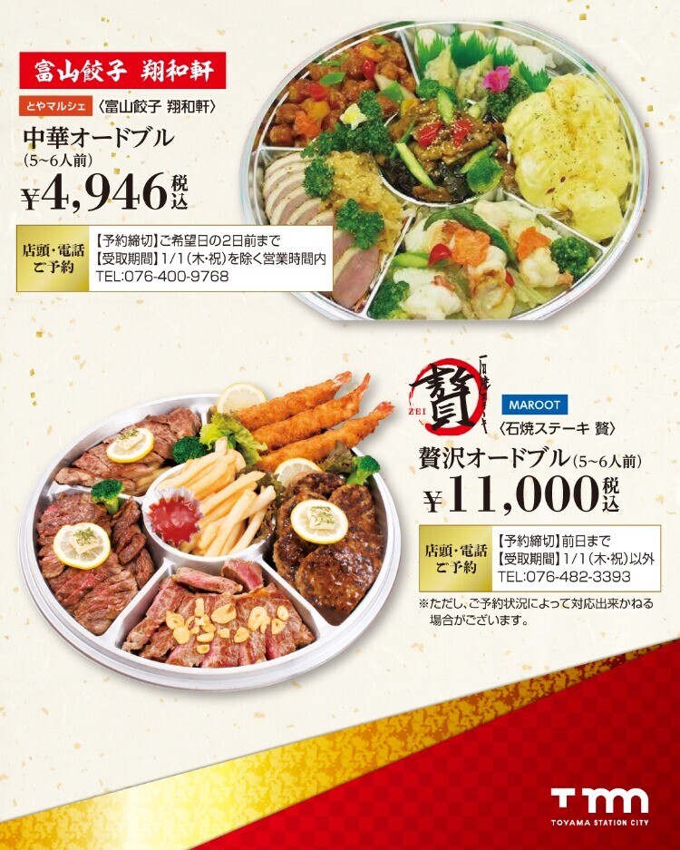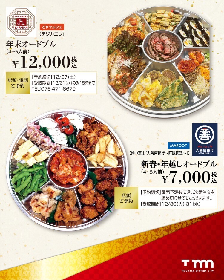 富山ステーションシティでは、年末年始の集まりや家族団らんにぴったりなお節・オードブルを取り揃えております。