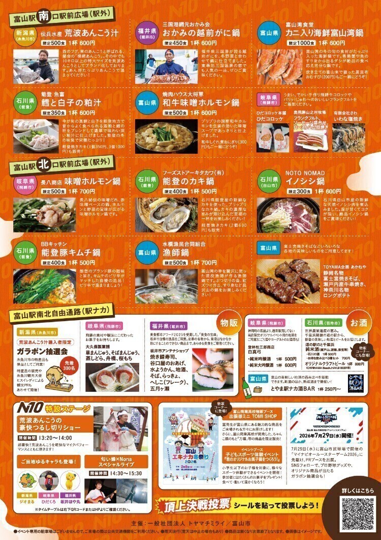 ・協力:糸魚川市、飛騨市、坂井市・三国港網元おかみ会、富山商業高等学校、とやま駅ナカ酒BAR、ボールシティとやまプロジェクト実行委員会、富山ターミナルビル株式会社