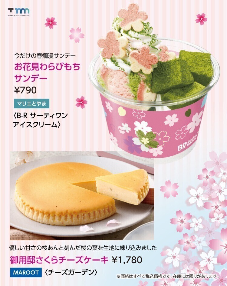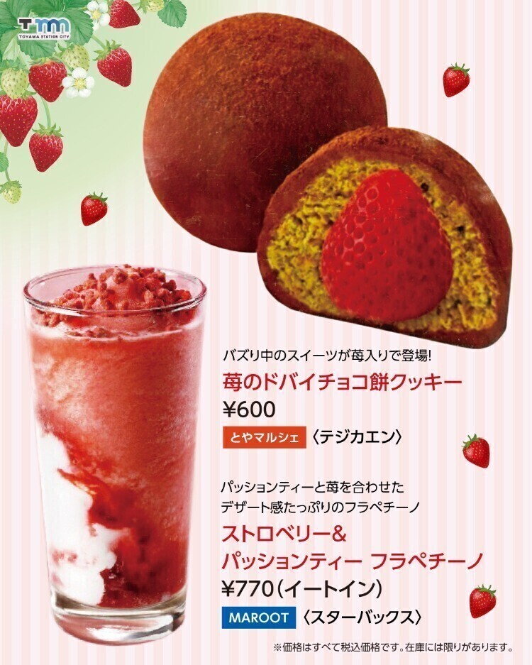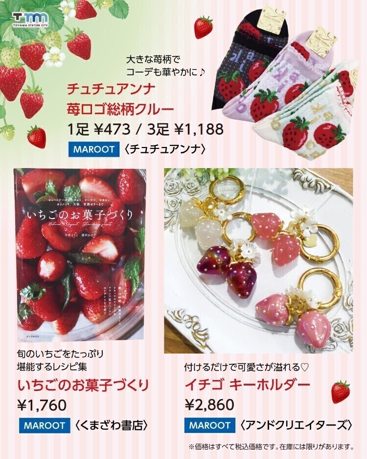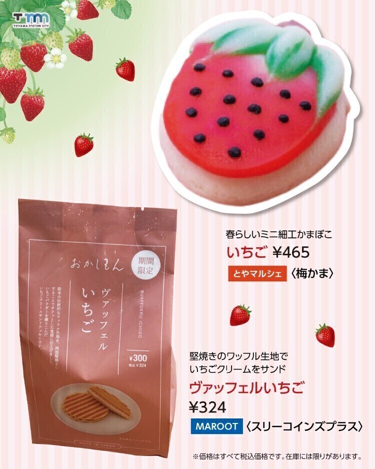 富山ステーションシティではいちごやさくらのおいしいスイーツやかわいい商品を取り揃えております🍓🌸💓