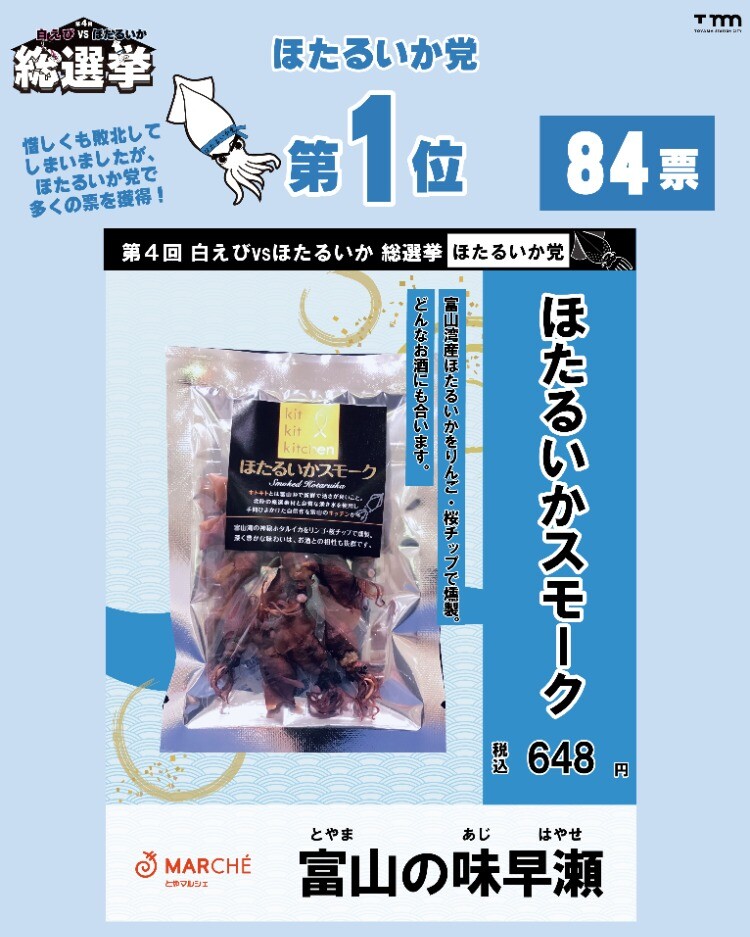 ▶1位 きときと市場とやマルシェ『富山の味早瀬』ほたるいかスモーク(84票)