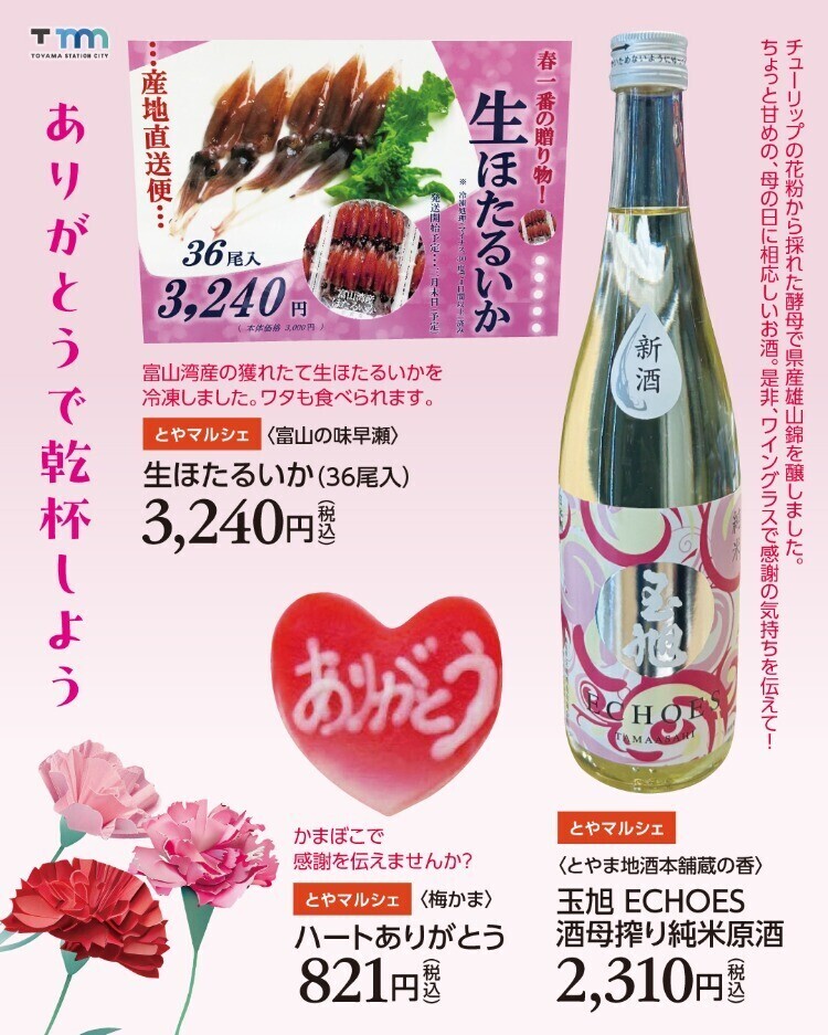 日頃の感謝の気持ちを込めて、マルート、とやマルシェ、マリエとやまで母の日ギフトを贈りませんか?🤱💕