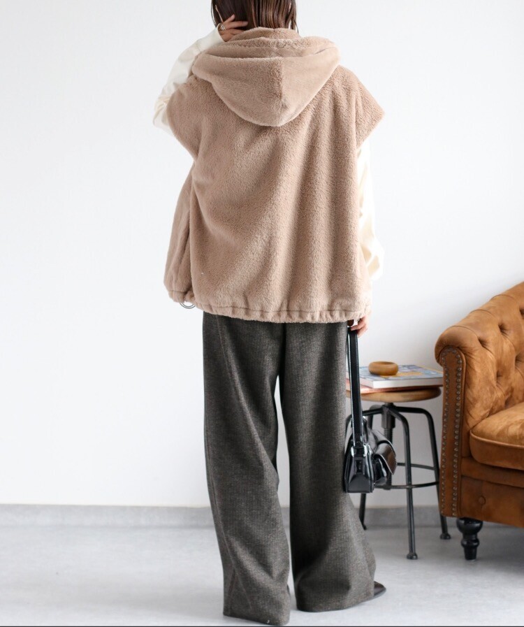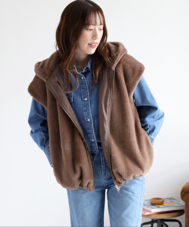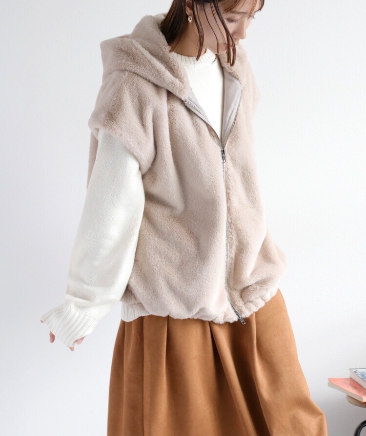 リアルミンクのような光沢感と肌触りを表現したフードベスト。