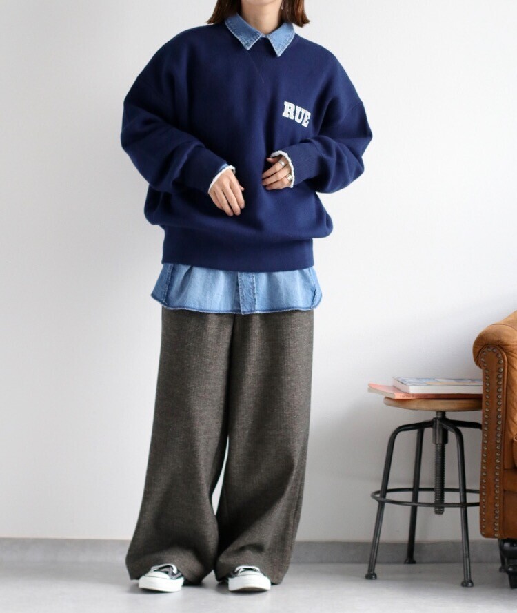 ワイド系のイージーパンツやスラックスで合わせるとバランスが綺麗です🎶