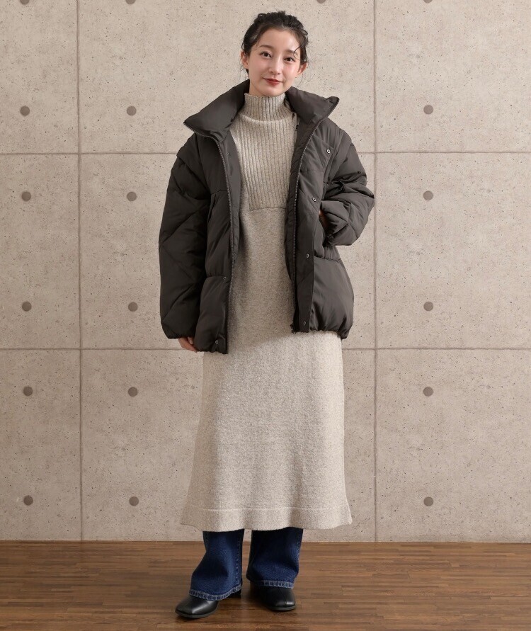 機能性に優れたハーフ丈のエアコンパフ中綿ジャケット。