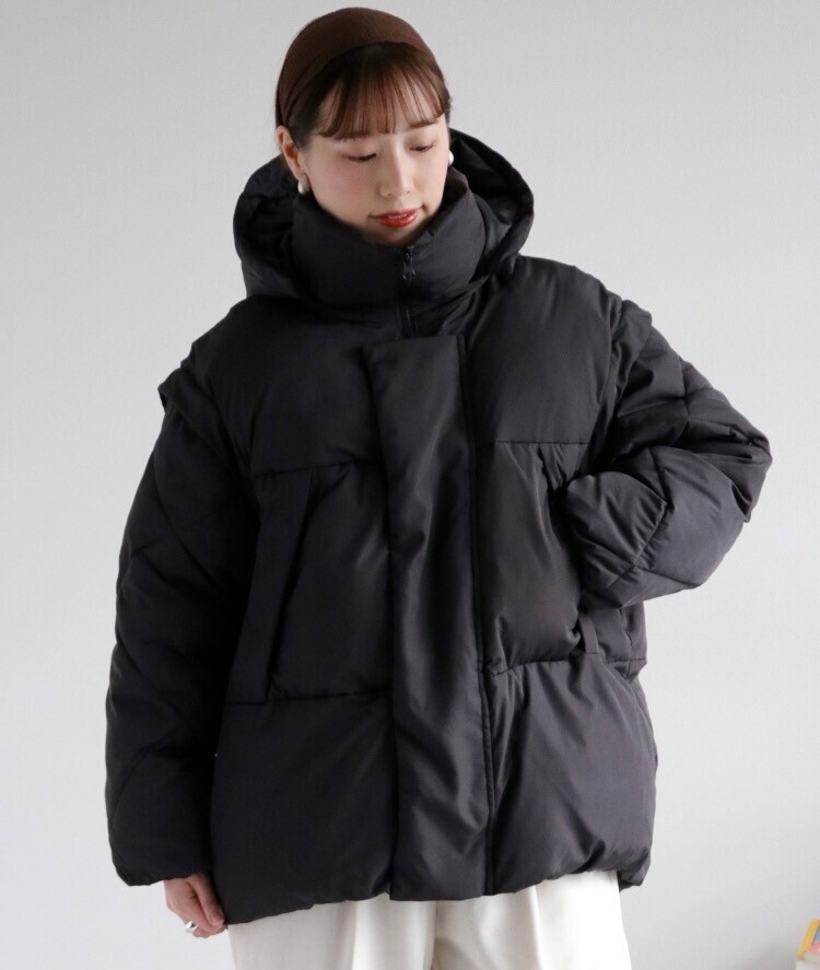 袖とフードはジッパーで取り外せるので、暖かい日にはパフベストとして着用できます!