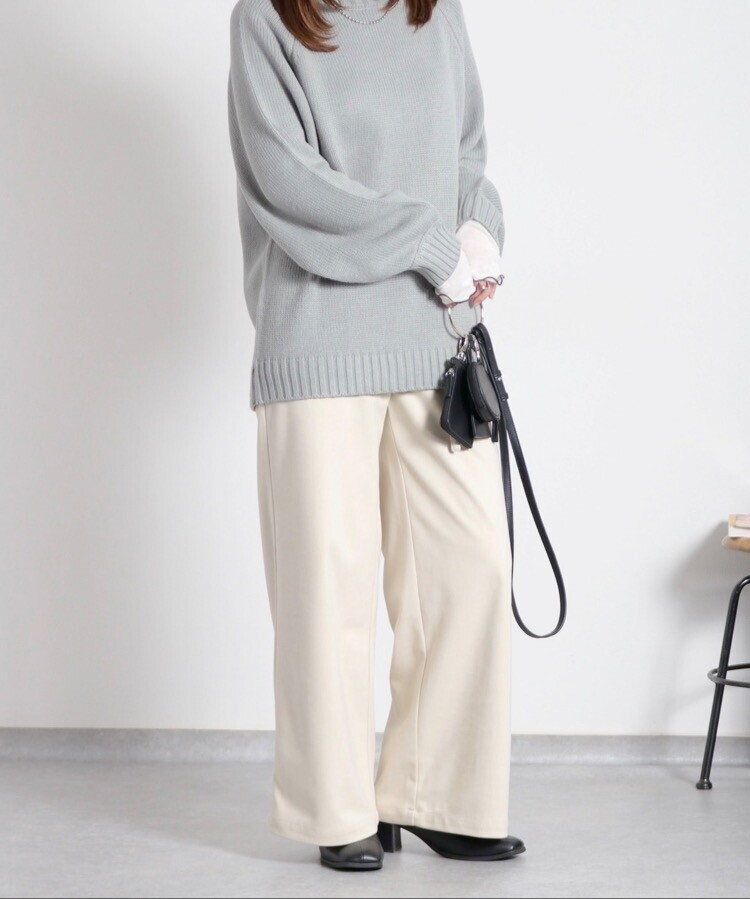 表面は微起毛にしており、肌触りも滑らか。とにかく柔らかいパンツで、とろみのある落ち感がコーデに高級感をプラスできます♪