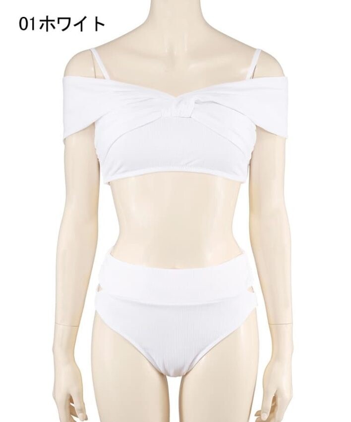 アウターライクなリブ素材を使用したオフショルダー水着。