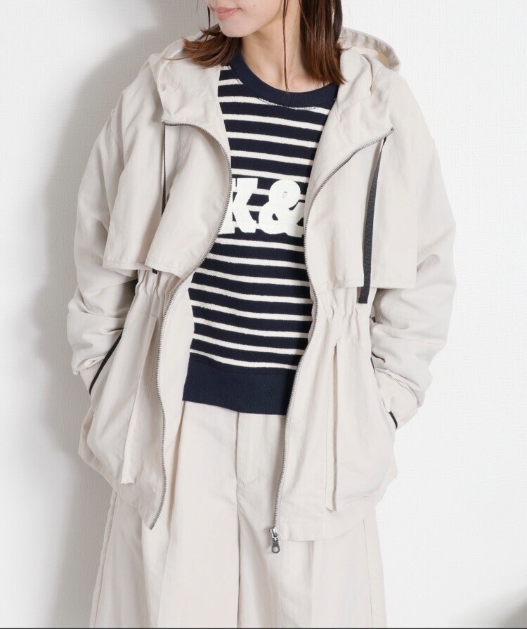 ややオーバーサイズで仕上げたハーフ丈ブルゾンは、裾にドローコードを施しているので、絞ることでメリハリのあるシルエットに変化します。