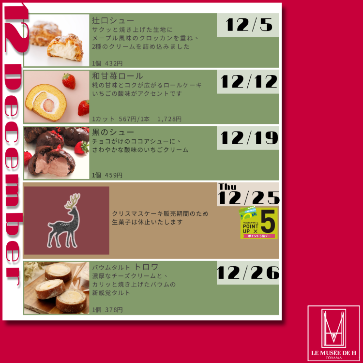 12月の販売スケジュール🎄
