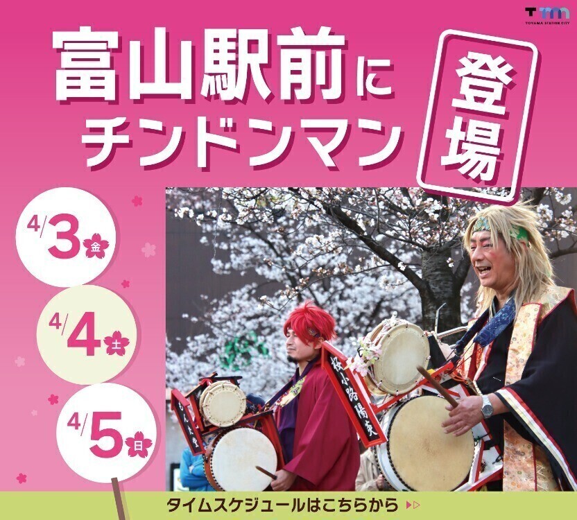 富山駅前にチンドンマンがやって来る!🌸