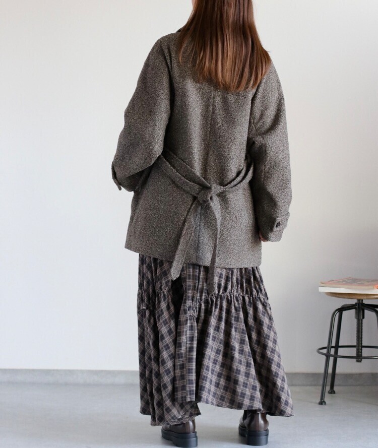 トレンド感のある大きめ襟で着用すれば小顔効果も期待できます🙊