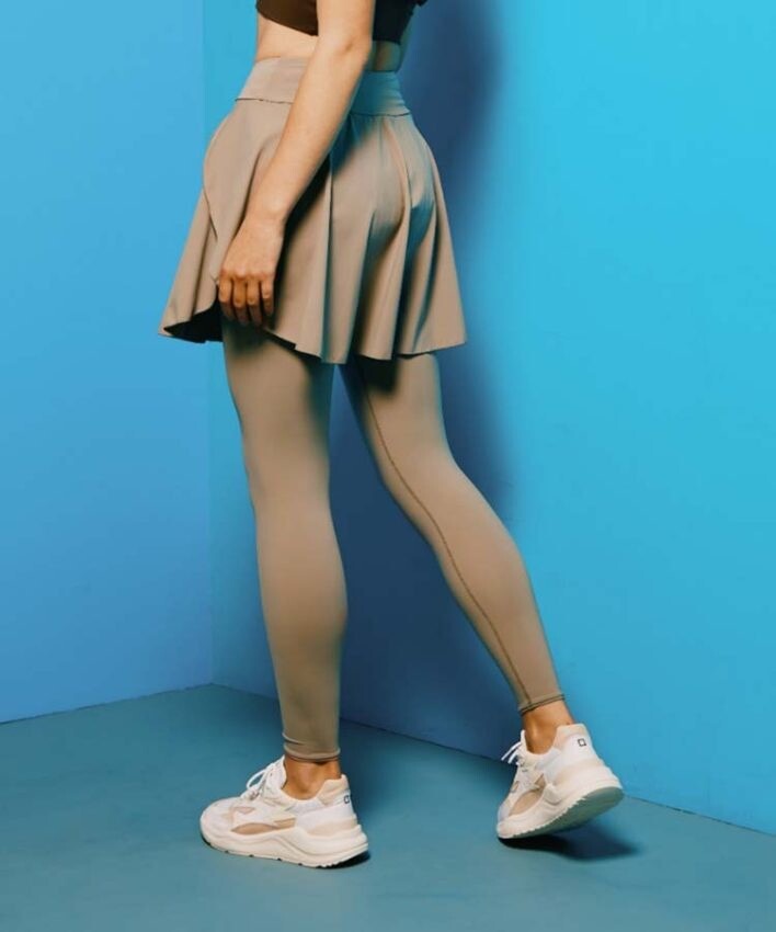 柔らかなストレッチ素材を使用した水陸両用のスカート付きレギンス。
